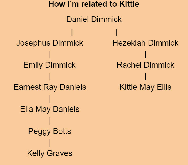 Kittie May Ellis was my first cousin three times removed. She is one of those names on the genealogy chart that I always considered “of no genealogical significance,” meaning she (like myself) never married and had no children and would therefore never have anyone in future generations give her a second thought. She caught my eye after finding some of her journals–written when she was in her late 80s–online and realizing what an amazing, surprising, and puzzling woman she was, particularly given her generation and circumstances. I don’t know her whole story, but what I know is definitely worth telling.